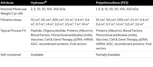 Sartocon® i Sartocube® kasete dostupne su s Hydrosart® i polietersulfonskom membranom, u raznim dimenzijama filtracijskih površina za potrebe mikrofiltracije, ultrafiltracije te dijafiltracije.