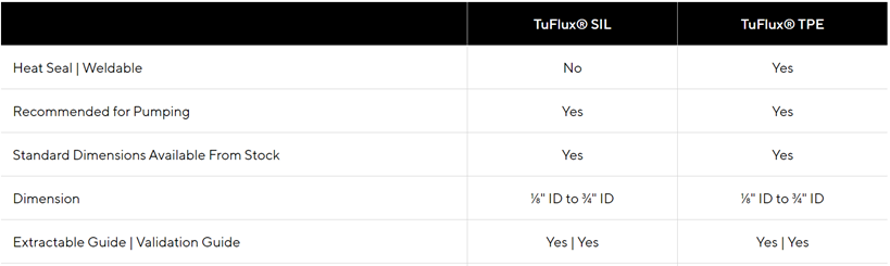 TuFlux® SIL silikonska crijeva proizvođača Sartorius Stedim Biotech visoko su otporna i platinasto očvrsnuta, kako bi olakšala prijenos tekućine u mnogim farmaceutskim i biofarmaceutskim primjenama, kao što su obrada medija i pufera, filtracija, fermentacija i sakupljanje stanica. TuFlux® SIL može se montirati na Sartorius Stedim Biotech single-use sklopove ili je dostupan u obliku nesterilnih cijevnih zavojnica. Crijeva su dostupna u 7 različitih dimenzija od 3,2 mm do 19,1 mm, debljine stijenki od 1,6 do 4,8 mm.