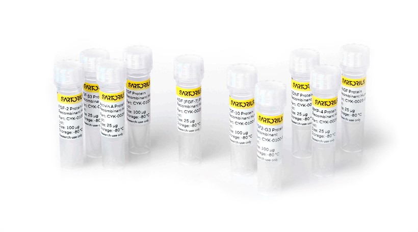 Sartorius nudi niz visokokvalitetnih citokina i faktora rasta namijenjenih isključivo za istraživačku upotrebu (RUO), koji se proizvode tehnologijom rekombinantne DNA i ne sadrže komponente životinjskog podrijetla ili onečišćujuće tvari.