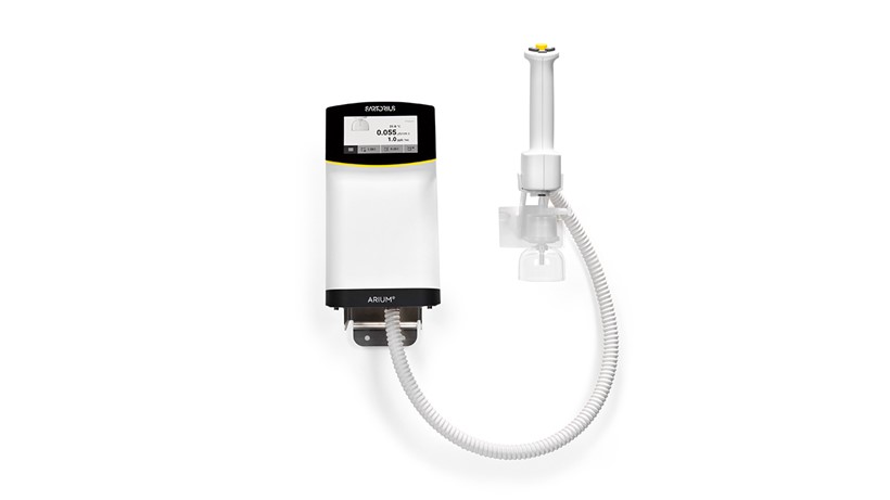 Arium® Smart Station jedinica prilagođena je rukovanju s lijevom i desnom rukom korisnika bez dodatnog pribora. Pomoću ovog uređaja, možete jednostavno napuniti posude i boce za uzorkovanje volumena od 1,5 mL do 5 L.